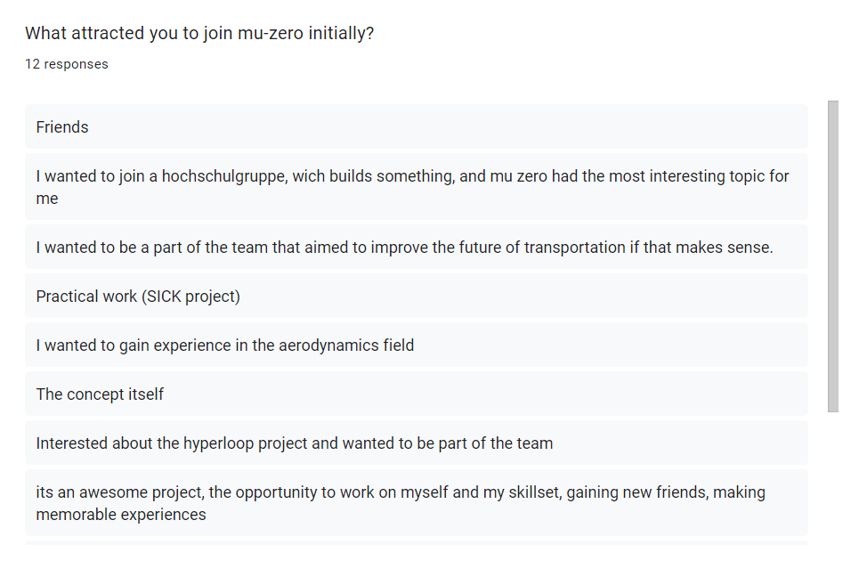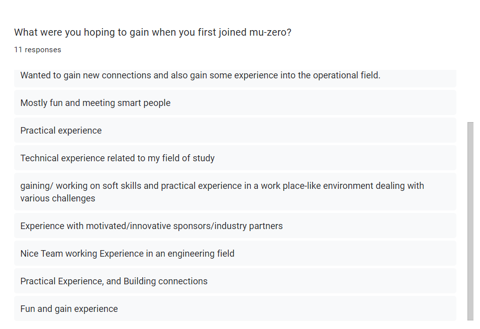 By conducting a survey for 10+ students, and collaborating with the CEO and team leaders, I was able to understand what draws students to join an organisation like mu-zero. What encourages them to submit an application, put in a minimum of 15hrs/week, and similarly, why would students choose not to join?