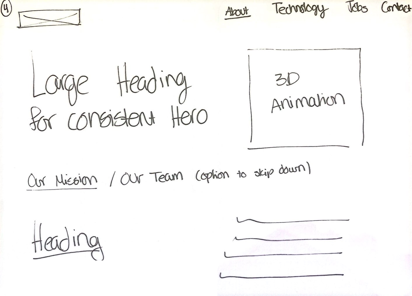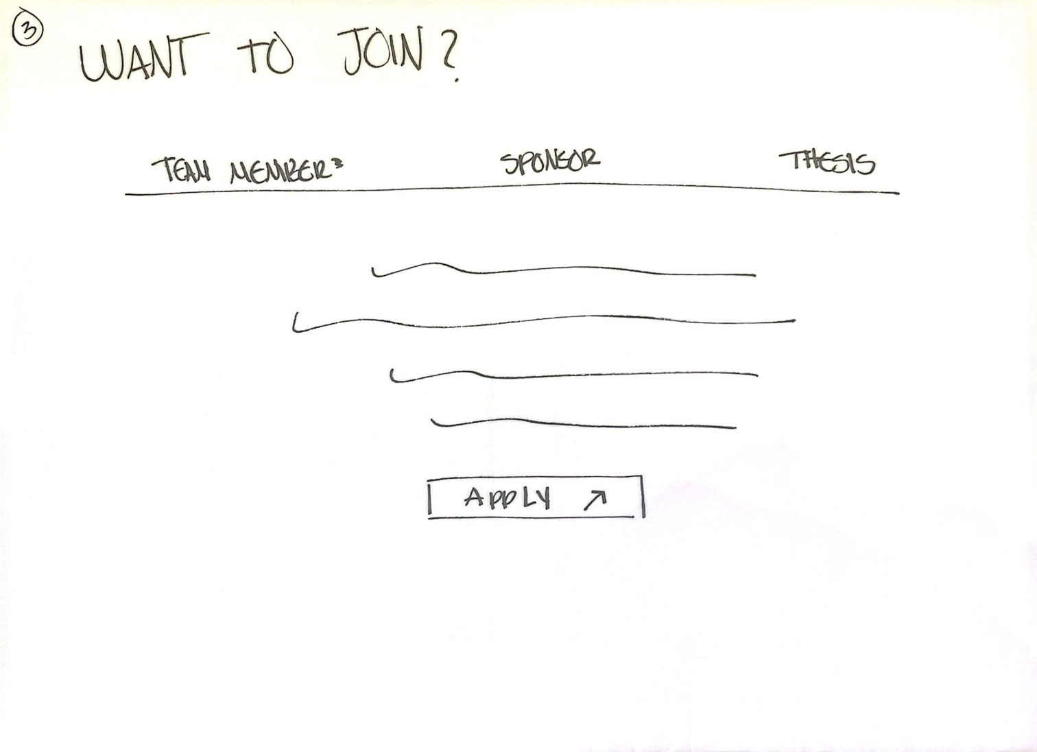 I began sketching with a few concept ideas in mind. The first step was making the navigation clear by limiting the sections found in the header. By making the About section a drop down menu, we can categorize pages like Mission, Team, Sponsors, and Join Us. The next was integrating CTA buttons in the right places, giving users various opportunities to learn more, contact the team, or submit an application.